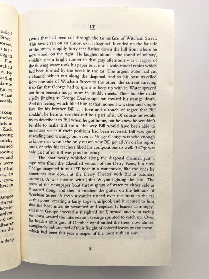 Handling time: 14 days Дерри, штат Мэн, – самый обычный город: знакомый, по большей части благоустроенный, хорошее место для жизни.Главные герои – это группа детей, которые видят – и чувствуют – то, что так сильно отличает Дерри от других городов. В ливневых стоках, в канализации ОНО таится, принимая форму каждого ночного кошмара, глубочайшего страха каждого человека. Иногда ОНО появляется в виде злого клоуна по имени Пеннивайз, а иногда протягивает руку, хватая, разрывая, убивая...Проходит время, и дети вырастают, уезжают и забывают. Пока их не призовут обратно, чтобы еще раз встретиться с ЭТИМ лицом к лицу, пока ОНО шевелится и извивается в мрачных глубинах их воспоминаний, снова всплывая, чтобы превратить их прошлые кошмары в ужасную реальность настоящего.«Оно» — роман американского писателя Стивена Кинга, написанный в жанре ужасов. В произведении затрагиваются важные для Кинга темы: власть памяти, сила объединённой группы, влияние травм детства на взрослую жизнь.По мотивам произведения было снято несколько фильмов.Книга на английском языке.
