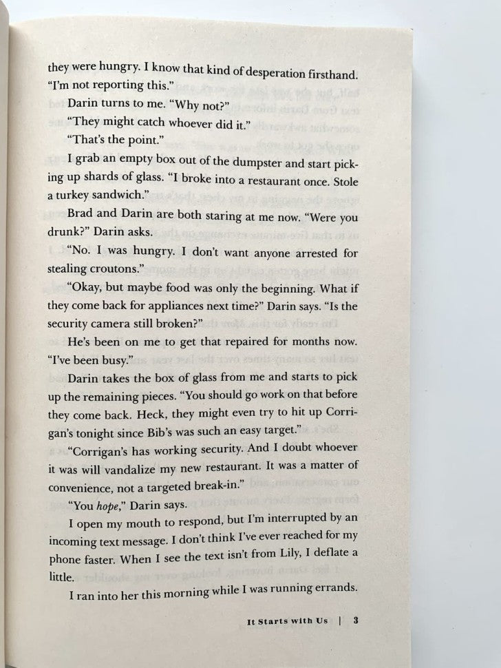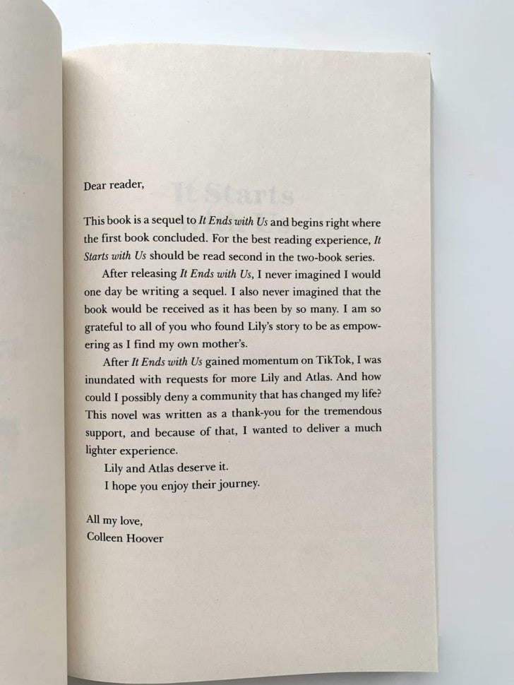 Handling time: 26 days Только Лили закрыла с бывшим мужем Райлом вопрос о совместном воспитании детей, как судьба вновь сталкивает ее с первой любовью - Атласом. После почти двухлетнего перерыва в общении, она сразу же соглашается на свидание с ним. Но эйфория быстро проходит: хотя она больше не замужем, Райл все еще является важной частью ее жизни, и Атлас Корриган - единственный мужчина, которого тот ненавидит. "Все начинается с нас" продолжает историю бестселлера «Все закончится на нас». От лица Лили и Атласа читатель больше узнает об их прошлом - и тем интереснее будет следить за настоящим. Lily and her ex-husband, Ryle, have just settled into a civil coparenting rhythm when she suddenly bumps into her first love, Atlas, again. After nearly two years separated, she is elated that for once, time is on their side, and she immediately says yes when Atlas asks her on a date. But her excitement is quickly hampered by the knowledge that, though they are no longer married, Ryle is still very much a part of her life-and Atlas Corrigan is the one man he will hate being in his ex-wife and daughter’s life. Switching between the perspectives of Lily and Atlas, It Starts with Us picks up right where the epilogue for the “gripping, pulse-pounding” (Sarah Pekkanen, author of Perfect Neighbors) bestselling phenomenon It Ends with Us left off. Revealing more about Atlas’s past and following Lily as she embraces a second chance at true love while navigating a jealous ex-husband, it proves that “no one delivers an emotional read like Colleen Hoover” (Anna Todd, New York Times bestselling author).