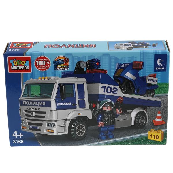 KAMAZ конструктор камаз: ПОЛИЦЕЙСКИЙ ЭВАКУАТОР с мотоциклом, 110 дет. Город мастеров в кор.2*18шт