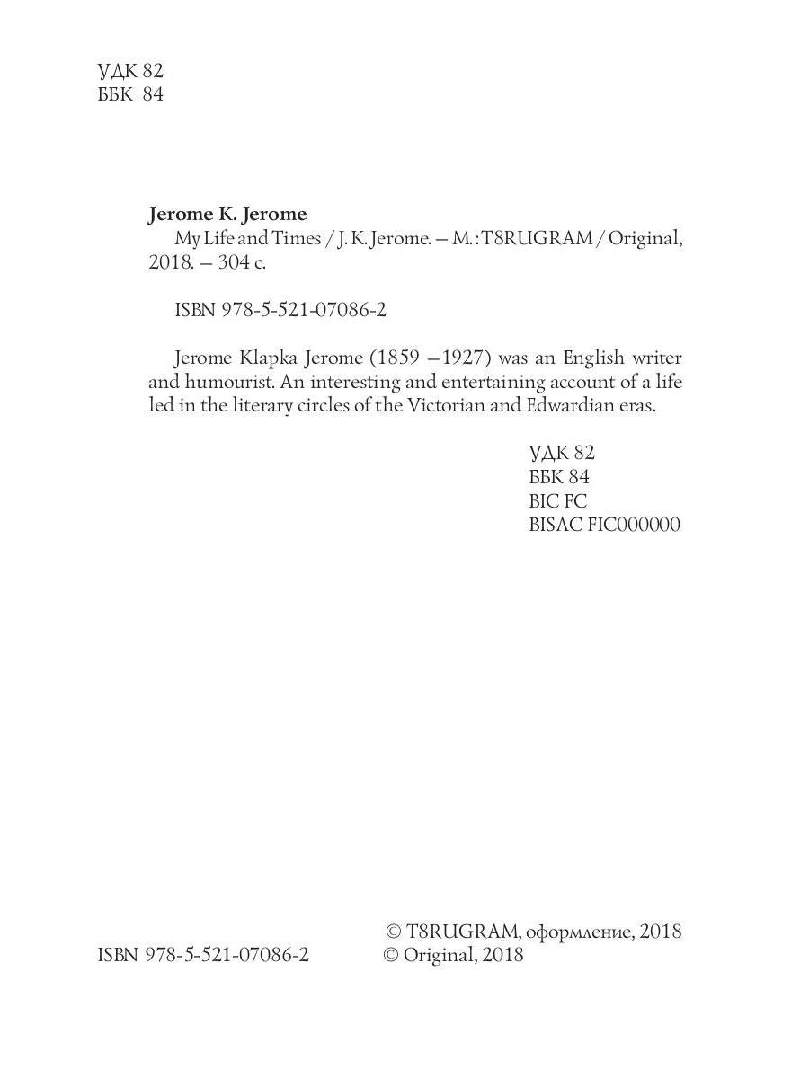 Автор: Jerome Jerome Klapka, «My Life and Times. Моя жизнь и времена (на английском языке)»: Jerome Klapka Jerome (1859 —1927) was an English writer and humourist. An interesting and entertaining account of a life led in the literary circles of the Victorian and Edwardian eras.
