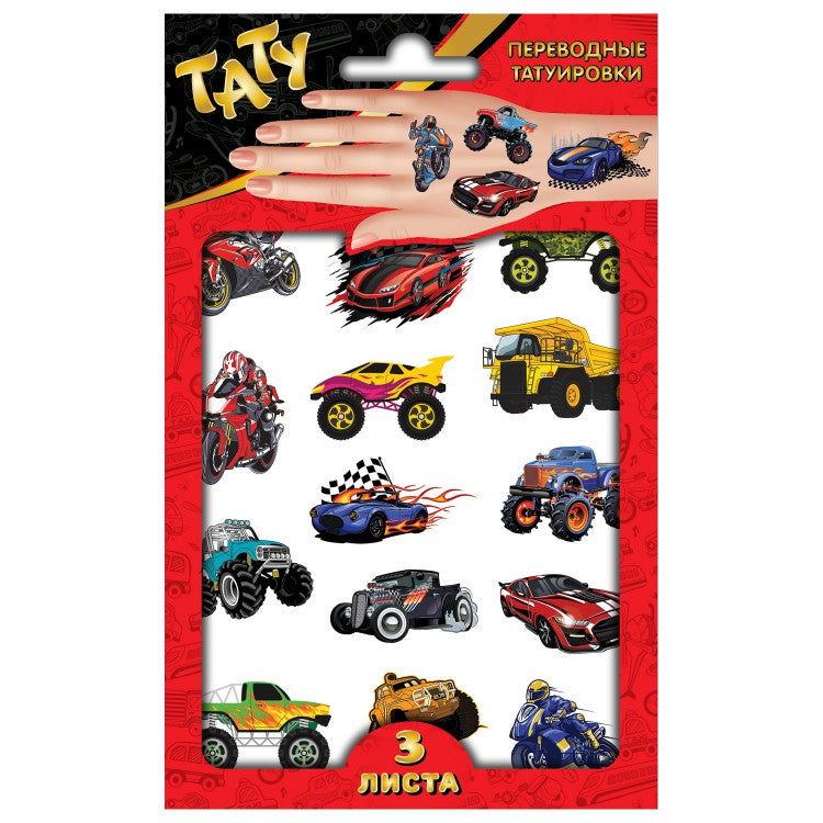 ND Play. Переводные татуировки "Супер-машинки" 3 листа арт.299990
