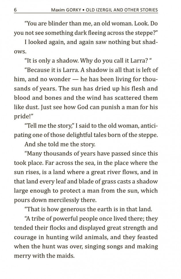 Maxim Gorky (1868-1936) is a Russian writer and playwright, one of the most significant and well-known Russian writers and thinkers in the world. Gorky was nominated five times for the Nobel Prize in Literature. Having begun with romantically inspired novels, songs in prose and short stories, Gorky then turned to dramaturgy. At the turn of the 19th and 20th centuries, he became famous for his works in a revolutionary spirit. Gorky is also the author of cycles of essays, autobiographical novels, plays, two major novels, and documentary stories. Maxim Gorky is in fact a pen name of Alexei Maximovich Peshkov, which first appeared in 1892 as a signature for the short story Makar Chudra. .This collection of short stories, named after the famous story Old Izergil, presents, perhaps, the best-known stories of Gorky, which reveal his many-sided writing talent. The main pathos of the writer's works is the dream of "new people", fearless and free, possessing the highest intellectual and physical abilities, able to achieve overarching goals beyond the possible, including even immortality. .