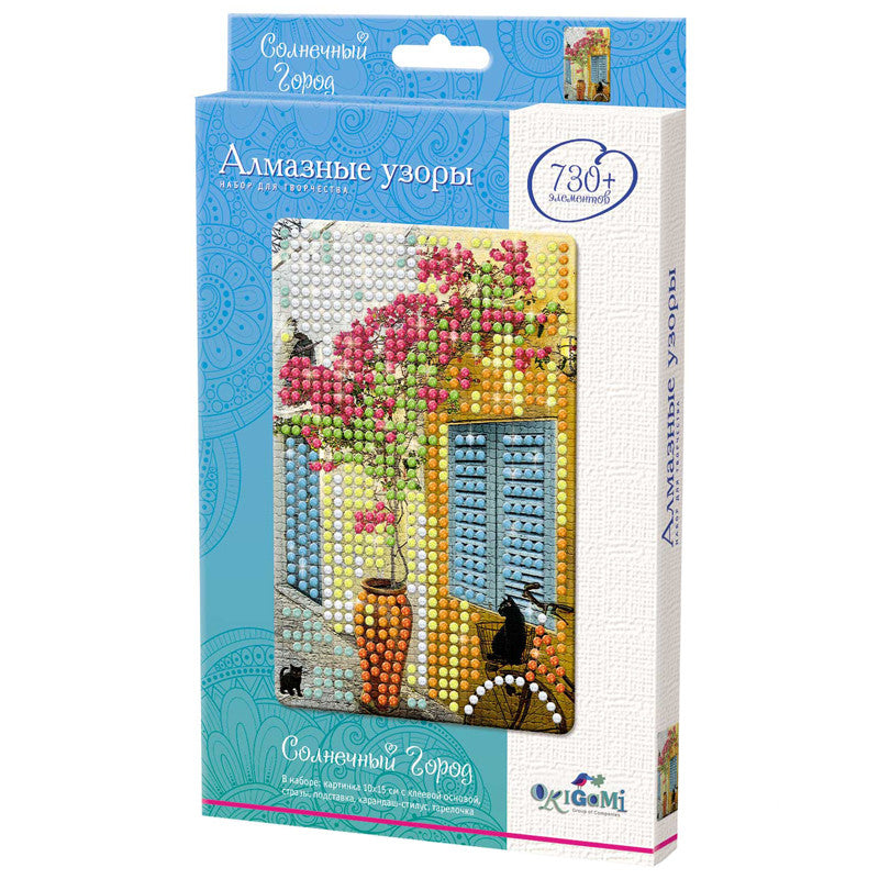 Handling time: 14 days Приглашаем Вас совершить блестящее путешествие в мир алмазной мозаики. Сделать картинку "Солнечный город" очень просто. Необходимо снять защитный слой с клеевой основы, и с помощью карандаша - стилуса приклеить стразы по номеру и цвету. Готовую картинку можно поставить на мольберт, который входит в набор. Блестящий результат восхищает всех!В наборе: картинка с клеевой основой (15 х 10 см), набор цветных стразов (730+), стилус-карандаш, тарелочка, мольберт.Упаковка: коробка с европодвесом.Не предназначено для детей младше 3-х лет.Материалы: картон, полимерные материалы.
