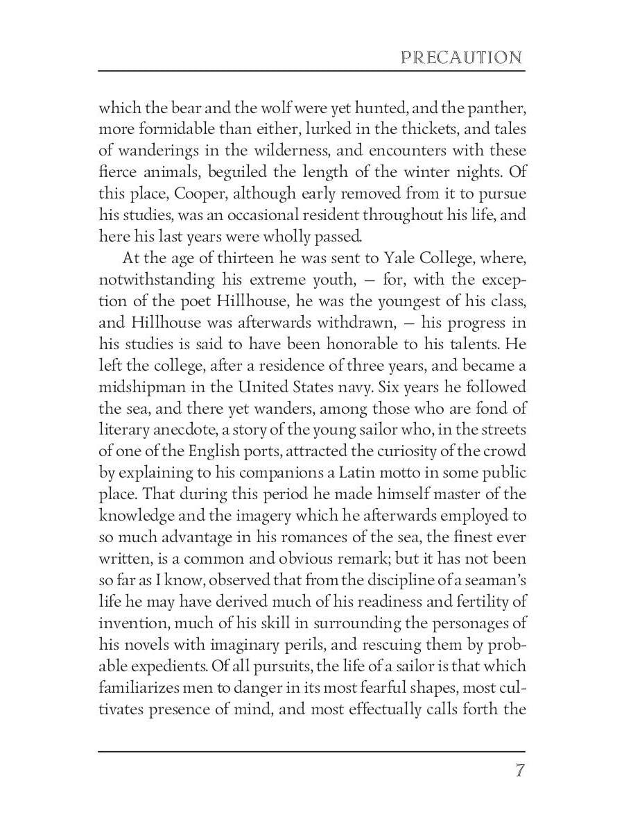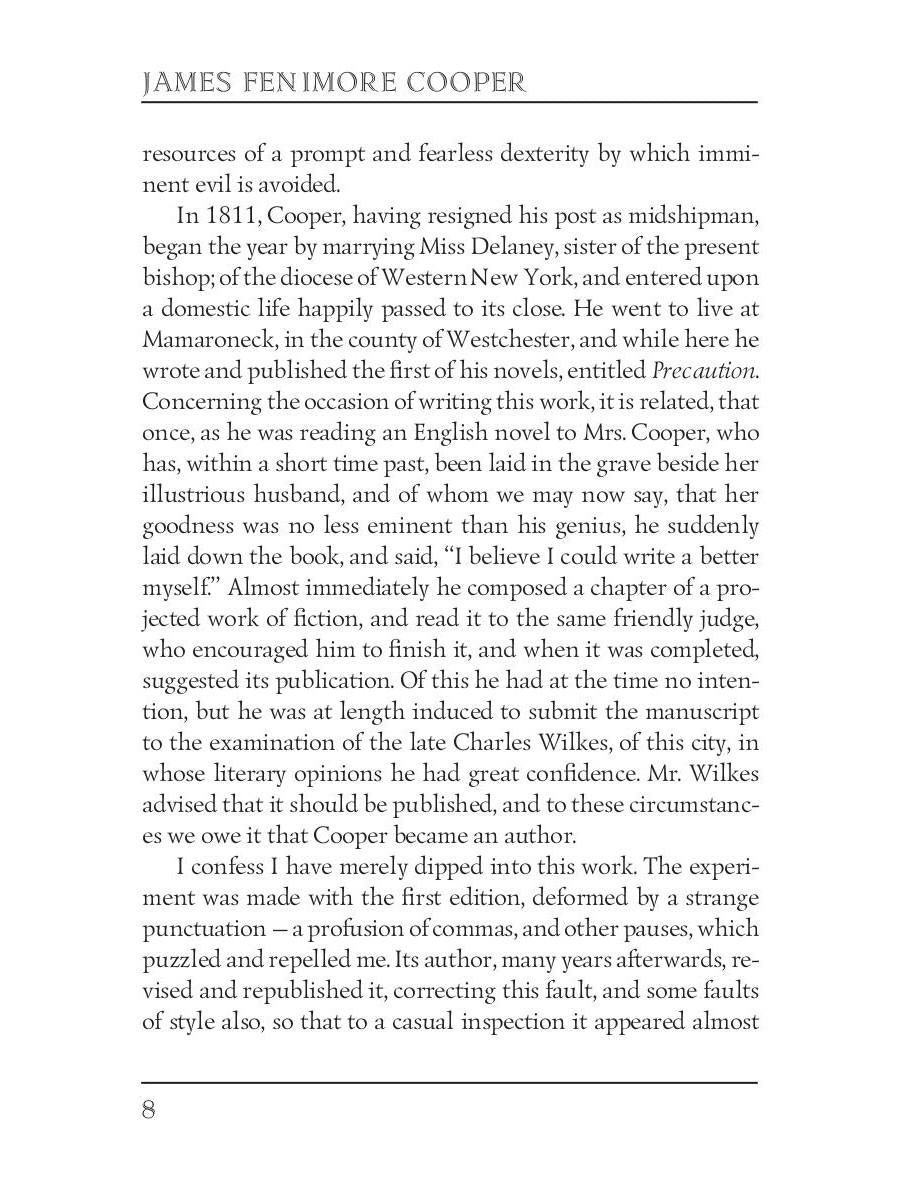 Handling time: 25 days Автор: Cooper J.F., «Precaution = Предосторожность: на англ.яз»: Precaution is the first novel written by American author James Fenimore Cooper. It was written in imitation of contemporary English domestic novels like those of Jane Austen and Amelia Opie. In the customary practice of the day Cooper was reading aloud to his wife one evening from a current English novel, but found the story dull. Throwing it aside, he declared, "I could write a better book than that myself,"