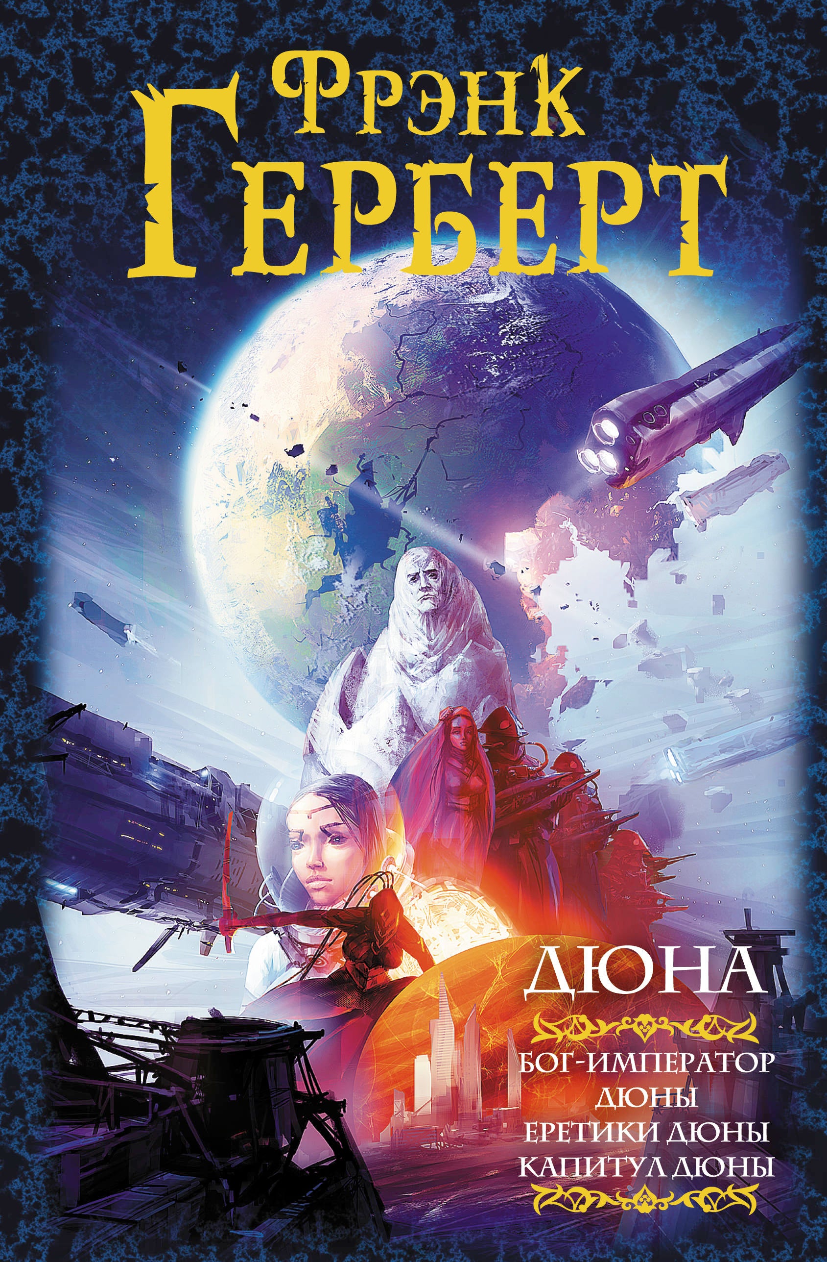 Фрэнк Герберт (1920—1986) успел написать много, но в истории остался прежде всего как автор эпопеи "Дюна" – возможно, самой прославленной саги в научной фантастике, саги, переведенной на десятки языков и завоевавшей по всему миру миллионы поклонников. Самый авторитетный журнал научной фантастики "Локус" признал "Дюну", первый роман эпопеи о песчаной планете, лучшим научно-фантастическим романом всех времен и народов. В "Дюне" Фрэнку Герберту удалось совершить невозможное — создать своеобразную "хронику далекого будущего". И не было за всю историю мировой фантастики картины грядущего более яркой, более зримой, более мощной и оригинальной.В сборник включены три романа из знаменитого цикла Фрэнка Герберта: "Бог-Император Дюны", "Еретики Дюны" и "Капитул Дюны".
