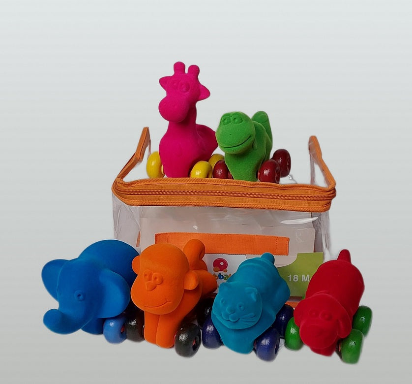 Rubbabu. 20460 Набор мини-каталок "Животные" 6 шт. из каучука, в ассортименте, в сумке