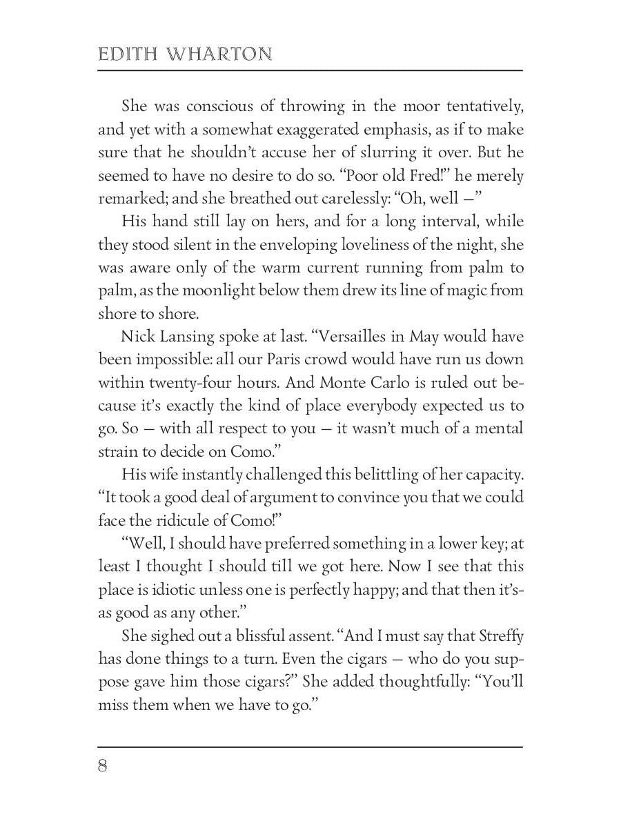 Автор: Wharton Edith, «The Glimpses of the Moon = Взгляды Луны: на англ.яз»: Edith Wharton (1862—1937) was an American novelist and short story writer. Her works show the lives of people of the late nineteenth century, the times of decline in American history. She was the first woman to receive the Pulitzer Prize for Literature in 1921. Wharton also was familiar with many famous people of the time, including President Theodore Roosevelt. "The Glimpses of the Moon" tells the story of two young and poor New Yorkers, Nick Lansing, and Susy Branch, who are in love and want to marry but can't decide to do this without the wealth. They both agree to separate when even one of them finds a wealthy partner. However, as they honeymoon with wealthy friends goes on, jealousy and conscience make the idyll crumble.