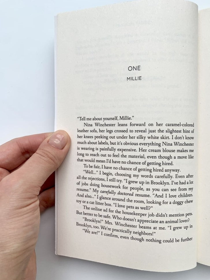 I try to ignore how Nina makes a mess just to watch me clean it up. How she tells strange lies about her own daughter. And how her husband, Andrew, seems more broken every day. But as I look into Andrew’s handsome brown eyes, so full of pain, it’s hard not to imagine what it would be like to live Nina’s life. The walk-in closet, the fancy car, the perfect husband.
