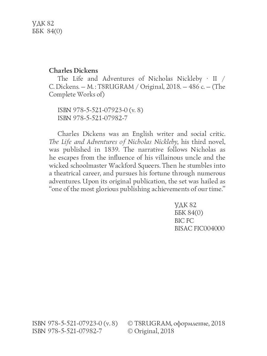 The Life and Adventures of Nicholas Nickleby 2 = Жизнь и приключения Николоса Никлеби 2. Т. 8: на англ.яз