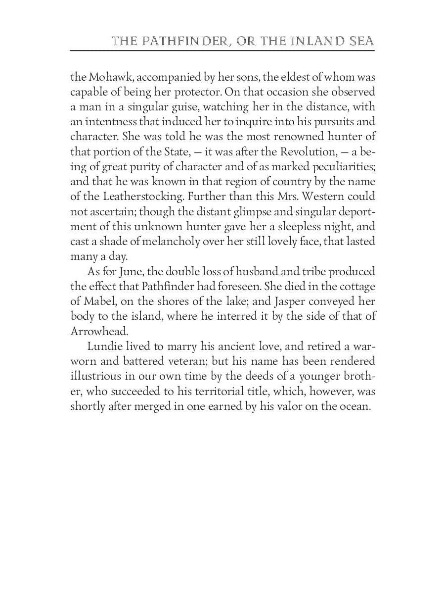 Автор: Cooper J.F., «The Pathfinder, or The Inland Sea = Следопыт, или На берегах Онтарио: на англ.яз»: A fast-paced narrative full of adventure and majestic descriptions of early frontier life, Indian raiders, and defenseless outposts, The Pathfinder set the standard for epic action literature. Vigorous, self-reliant, amazingly resourceful, and moral, Natty Bumppo is the prototype of the Western hero. A faultless arbiter of wilderness justice, he hates middle-class hypocrisy. But he finds his love divided between the woman he has pledged to protect on a treacherous journey and the untouched forest that sustains him in his beliefs.