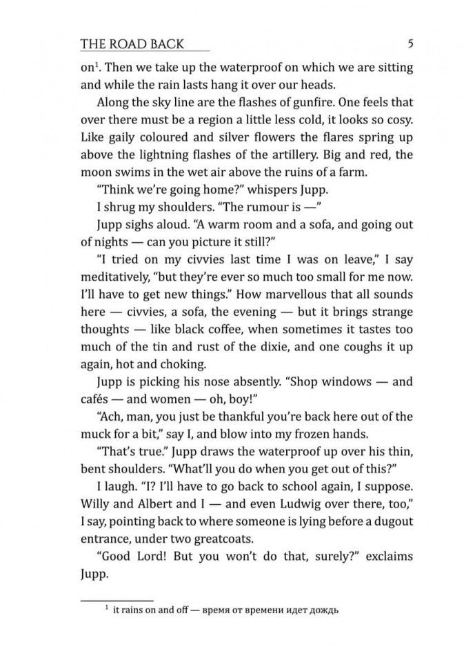 Handling time: 26 days Вниманию читателя предлагается роман «Возвращение» в переводе на английский язык. Вчерашние мальчишки, вернувшись из окопов Первой мировой войны,пытаются найти свое место в мирной жизни. В книге приводится полный неадаптированный текст романа с комментариями и словарем. english/английская классика/книга на английском языке/читать на английском/английский в оригинале/чтение на английском/домашнее чтение/английское чтение B2/английский текст/полный неадаптированный текст