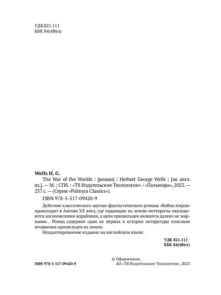 #ASTTD# Search Terms: Уэллс Герберт Джордж , Yells Gerbert Djordj , RUGRAM_Пальмира , RUGRAM_Palmira , Palmyra Classics , Palmyra Classics , 9785517094209 , 978-5-517-09420-9 , 1906450