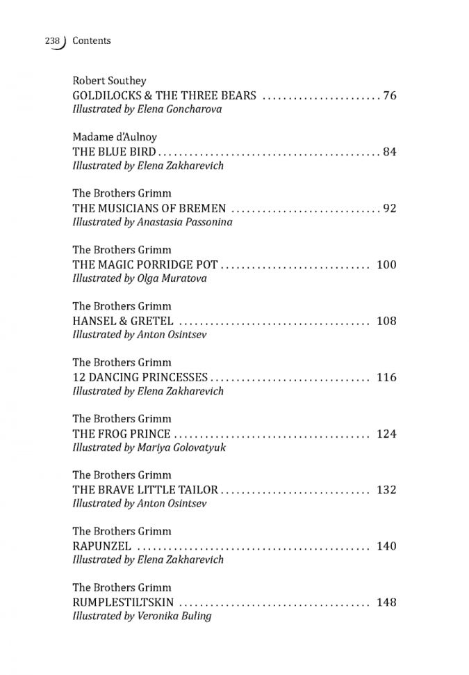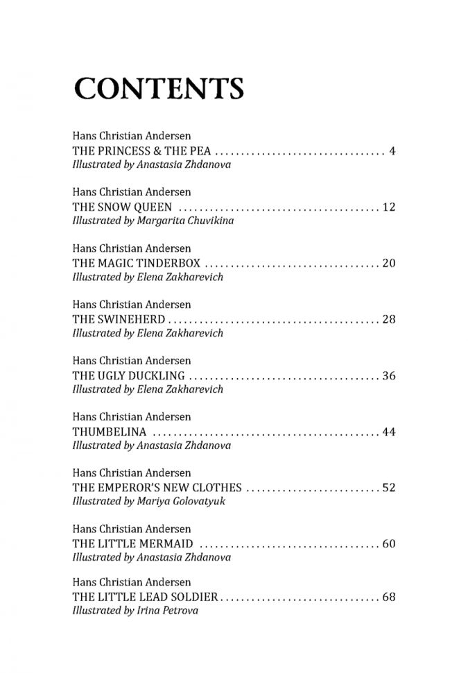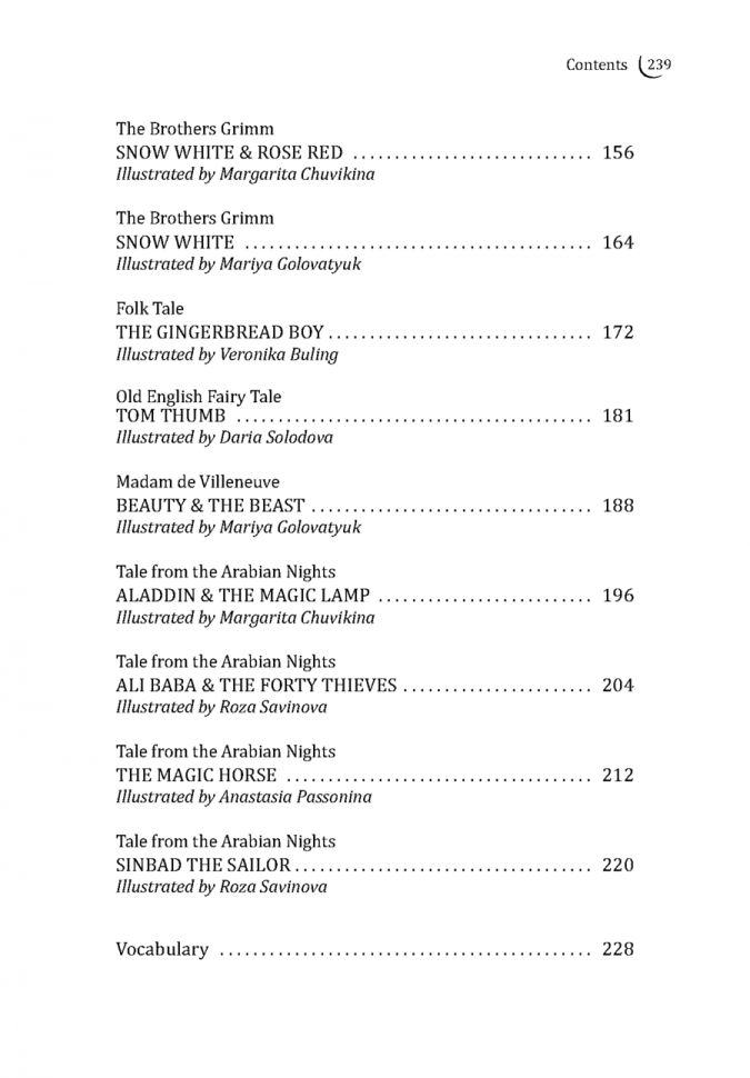 Тексты адаптированы Мариной Анатольевной Гацкевич, автором популярных учебников и пособий по английскому языку, и легко воспринимаются дошкольниками и младшими школьниками, помогают освоить грамматику, современную лексику, пополняют словарный запас и расширяют кругозор маленьких читателей. Сказки: «Принцесса на горошине», «Снежная Королева», «Огниво», «Свинопас», «Златовласка и три медведя», «Синяя птица», «Бременские музыканты», «Горшочек каши», «Гензель и Гретель», «12 танцующих принцесс», «Принц-лягушка», «Пряничный человечек», «Аладдин и волшебная лампа», «Али-Баба и сорок разбойников», «Гадкий утенок», «Дюймовочка», «Новое платье короля», «Русалочка», «Стойкий оловянный солдатик», «Красавица и чудовище», «Храбрый портняжка», «Рапунцель», «Румпельштильцхен», «Беляночка и Розочка», «Белоснежка», «Мальчик-с-пальчик», «Волшебный конь», «Синдбад-мореход».