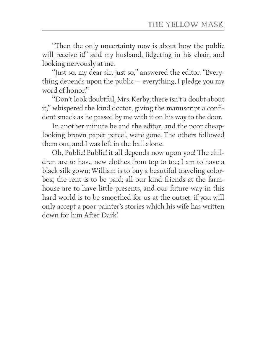 Handling time: 14 days Автор: Collins William Wilkie, «The Yellow Mask. Желтая маска (на английском языке)»: The secret of Wilkie Collins's success is the combination of various genres: the writer-master of intrigue and fascinating plot-skillfully combines melodrama, detective and a manners novel in his books, generously flavoring them elements of the Gothic novel. The Yellow Mask — a complete mystery novel.