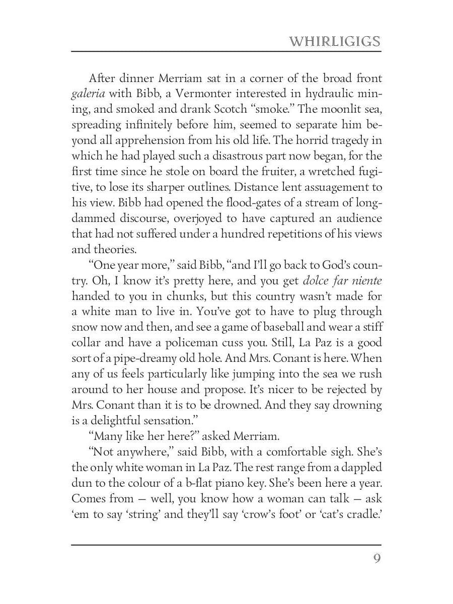 Автор: Henry O., «Whirligigs. Коловращение (сборник рассказов на английском языке)»: William Sydney Porter known by his pen name O. Henry, was an American short story writer. His stories are known for their surprise endings. This story collection includes «The World and the Door», «The Theory and the Hound», «The Hypotheses of Failure», «Calloway's Code», «A Matter of Mean Elevation» and others.