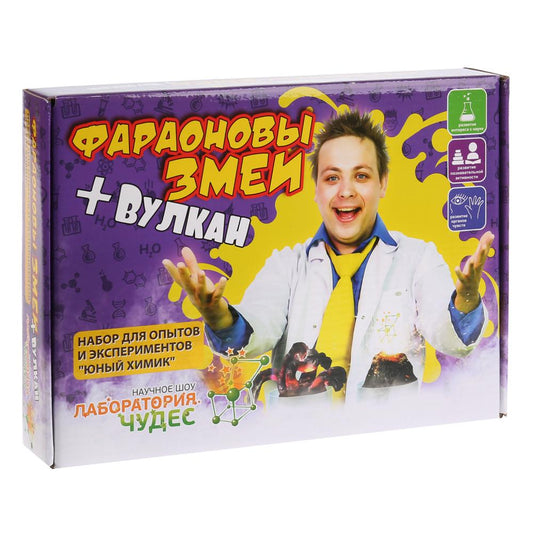 ЮНЫЙ ХИМИК. НАБОР ДЛЯ ОПЫТОВ И ЭКСПЕРИМЕНТОВ "ФАРАОНОВЫ ЗМЕИ + ВУЛКАН" в кор.12шт